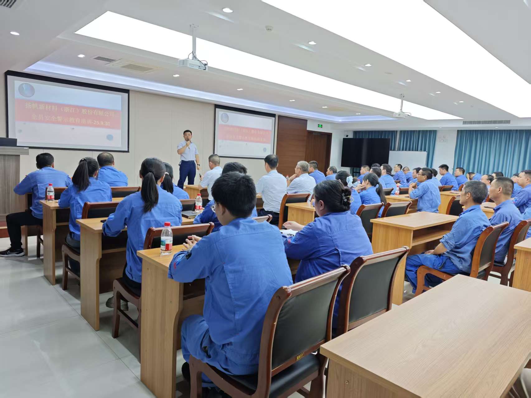 9月30日下午,揚帆新材料(浙江)股份有限公司在研究院三樓會議室組織開展了全員安全警示教育培訓(xùn)活動。此次培訓(xùn)由環(huán)安總監(jiān)舒國棟主持,董事長樊彬、總裁陶明出席并作出重要指示,公司全體員工參加培訓(xùn)。